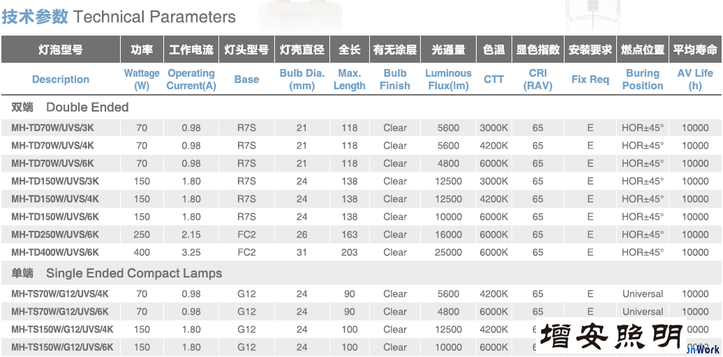 詳細介紹 單雙端金鹵燈結構緊湊,設計小巧,